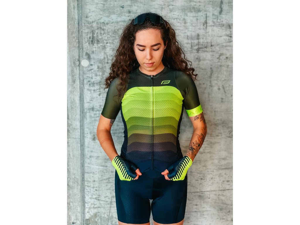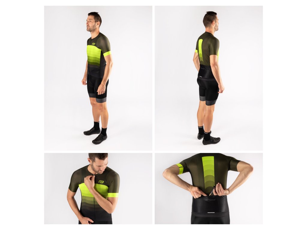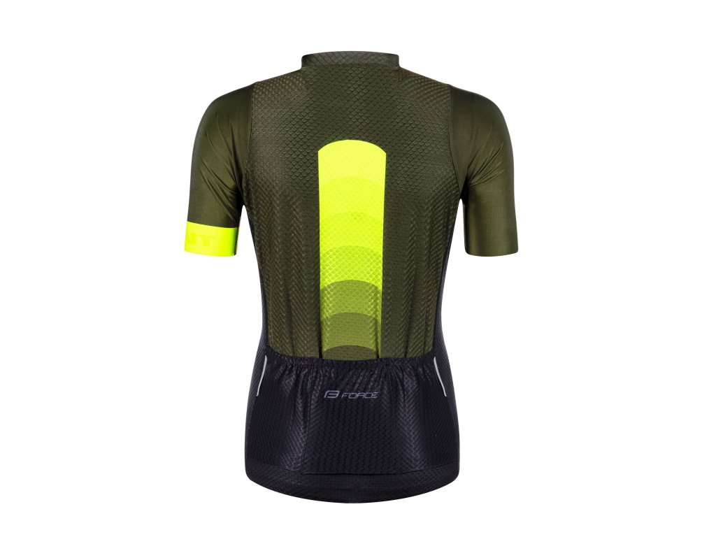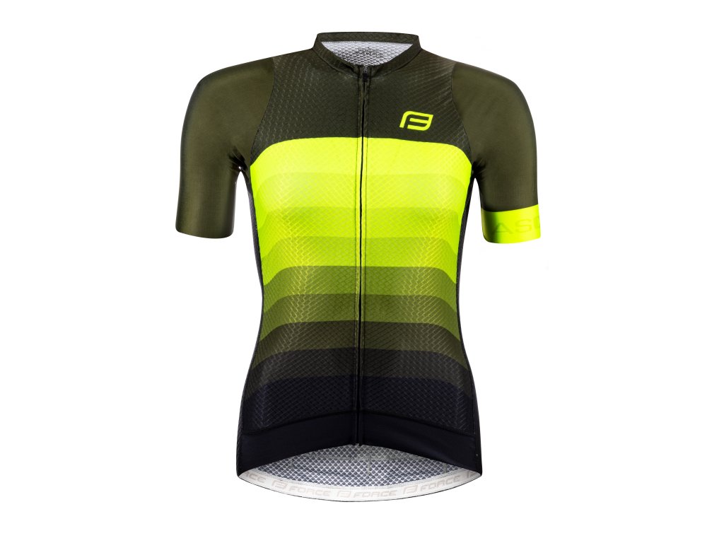 Cyklistický dres FORCE ASCENT s krátkým rukávem v zeleno-žluté barvě.