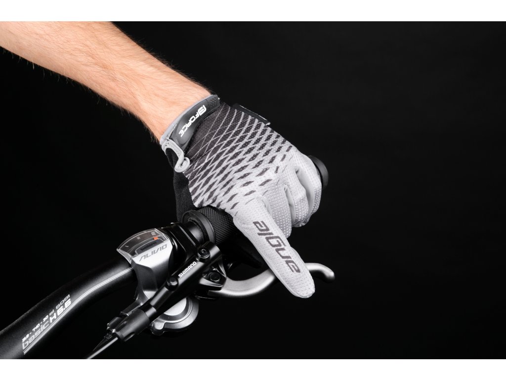 Celoprstové unisex cyklistické rukavice FORCE MTB ANGLE v šedo-černé barvě.
