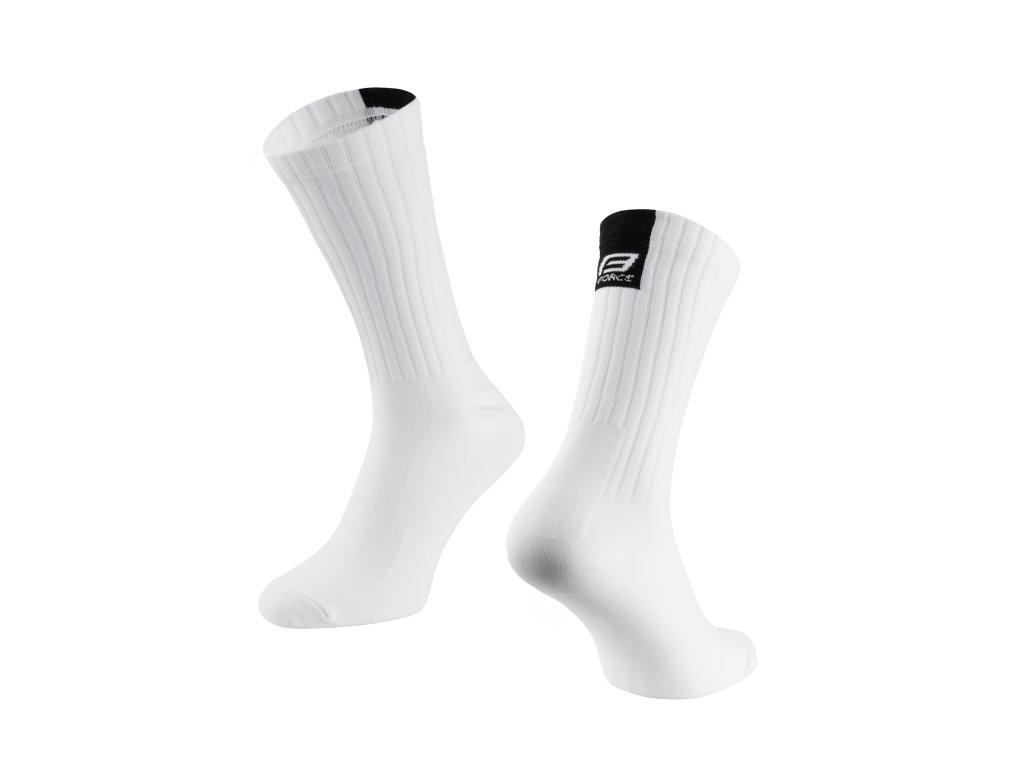 Vyšší cyklistické ponožky FORCE RIBBON v bílé barvě.